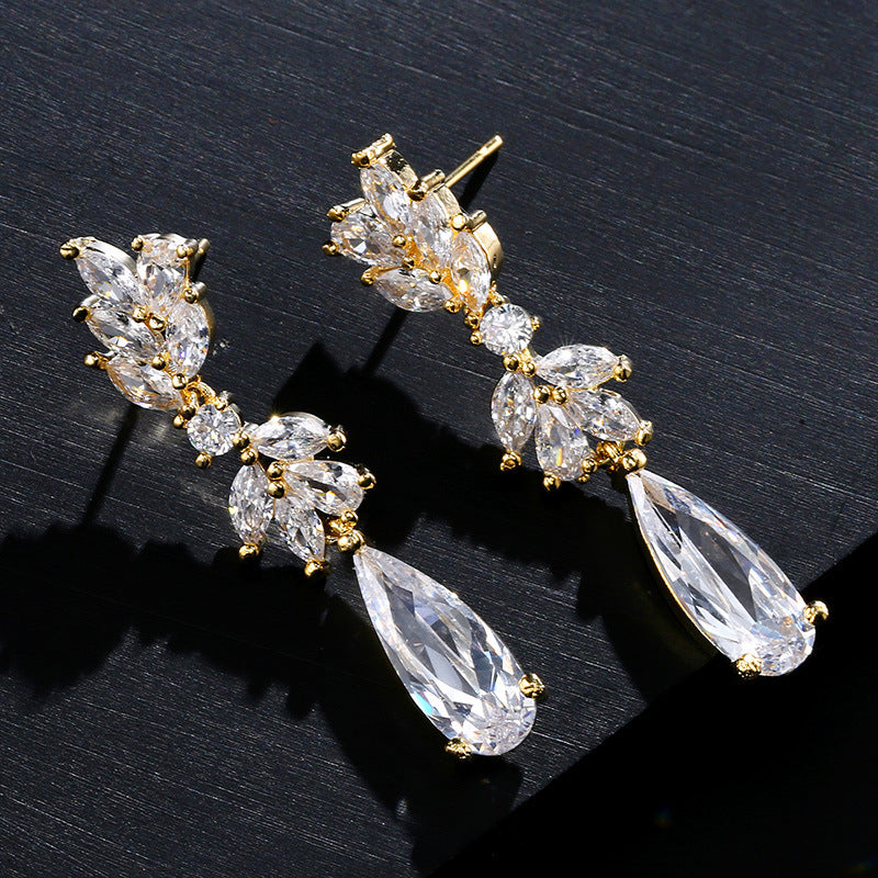 ZAKOL-boucles d'oreilles en Zircon blanc en forme de fleur, pendentif en cristal, pendentif goutte d'eau, bijoux de mariage de mariée, FSEP50L